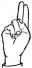На ћирилици написано МИЛЕНА ХИНИЋ састоји се из 11 слова [?]. Исписано ћириличном једноручном азбуком за глувонеме: